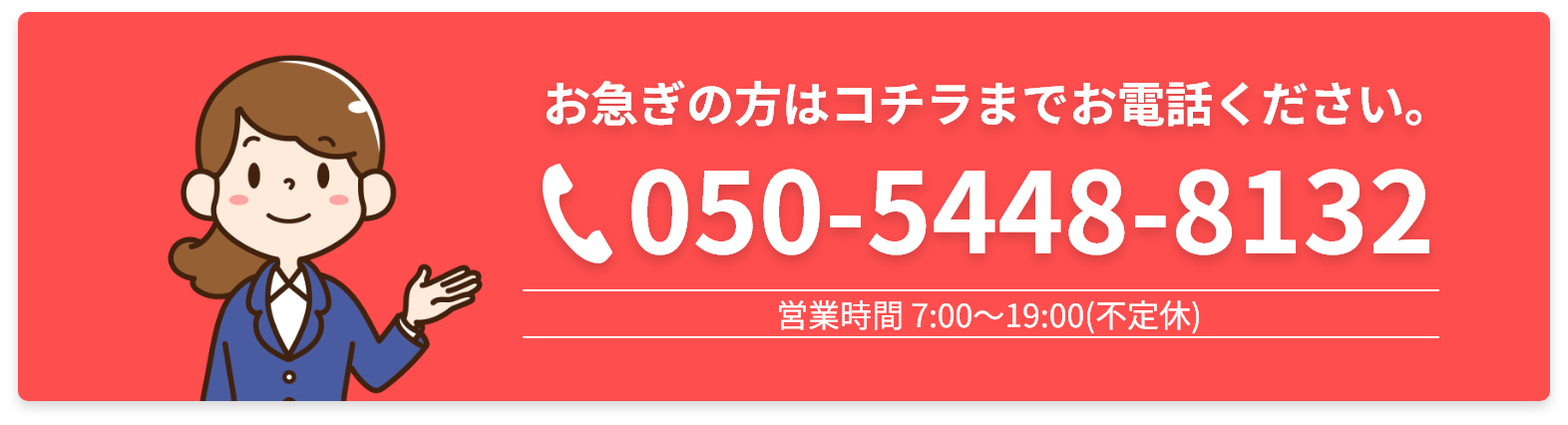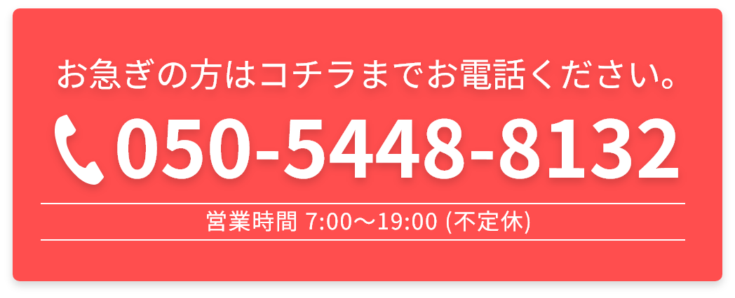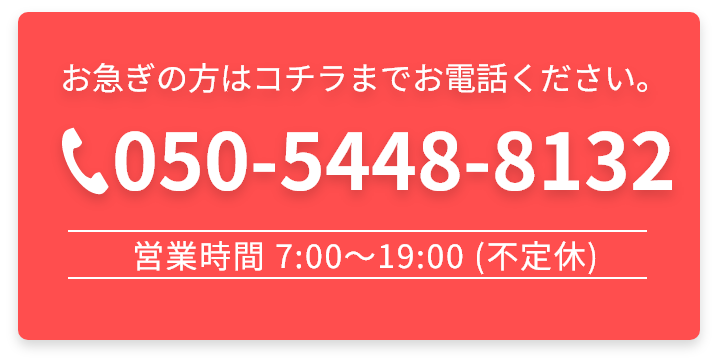 最短で即日訪問も可能です。対応エリア外でも、まずはご相談ください。